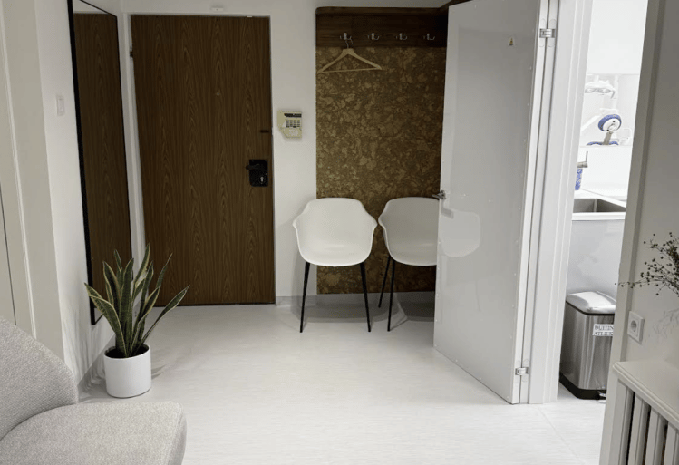 Įėjus į vidinį kiemelį pamatysite laiptus, jais pateksite į mūsų kabinetą.